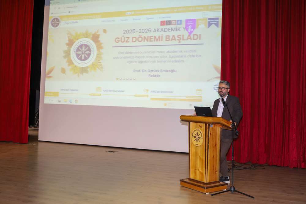 Üniversitemiz 2025–2026 Akademik Yılı Rehberlik ve Uyum Programı’nın ilk etabı, 7 Ekim 2025 tarihinde Aşık Şenlik Kültür Merkezi’nde geniş bir katılımla gerçekleştirildi. Ardahan Üniversitesi Rehberlik ve Uyum Ofisi koordinatörlüğünde düzenlenen programa; Rektörümüz Prof. Dr. Öztürk Emiroğlu, Rektör Yardımcımız Prof. Dr. Zafer Aykanat, fakülte dekanları, yüksekokul müdürleri, daire başkanları, kamu kurum ve kuruluşlarının temsilcileri, akademik ve idari personel ile öğrenciler katıldı.Program; Saygı Duruşu ve İstiklal Marşı’nın ardından Ardahan Üniversitesi Tanıtım Filminin izlenmesiyle başladı. Açılış konuşmasını, Rehberlik ve Uyum Ofisi Koordinatörü Doç. Dr. İbrahim Okan Akkın yaptı. Ardından Öğrenci İşleri Daire Başkanı Evrin Yıldız, Sağlık Kültür ve Spor Daire Başkanı Metin Çimli, Uzaktan Eğitim Uygulama ve Araştırma Merkezi Müdürü ve Bilgi İşlem Daire Başkanı Öğr. Gör. Sinan Üst, Kütüphane ve Dokümantasyon Daire Başkanlığı personeli Pakize Karlı, Ortak Dersler Koordinatörü Öğr. Gör. Feryal Bulut, Dış İlişkiler Ofisi Koordinatörlüğü’nden Öğr. Gör. Mustafa Ünsal, Kariyer Planlama ve Mezun İzleme Uygulama ve Araştırma Merkezi Müdürü Dr. Öğr. Üyesi Zeynep Uludağ ile Sürekli Eğitim Uygulama ve Araştırma Merkezi Müdürü Doç. Dr. Özlem Eştürk bilgilendirme sunumlarını gerçekleştirdiler.